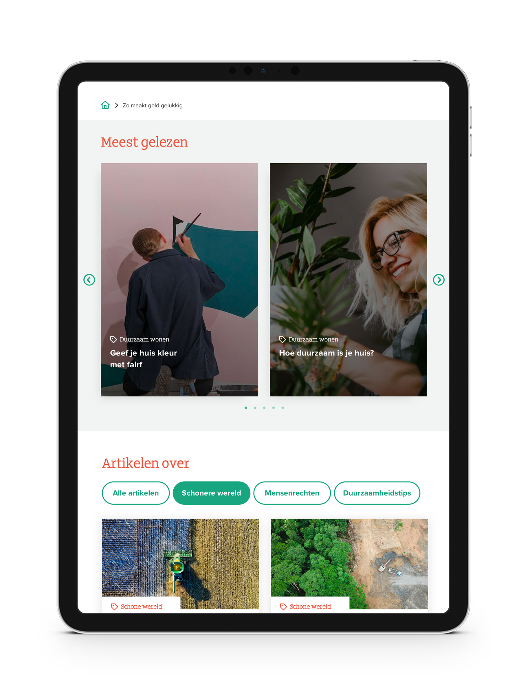 Het nieuwe platform ‘Zo maakt geld gelukkig’ wordt op dit moment door het retail team gebouwd en is nog niet live. Het was voor mij een uitdagend project, omdat ik mijn skills als consultant, UX’er en visual designer kon toepassen.Â