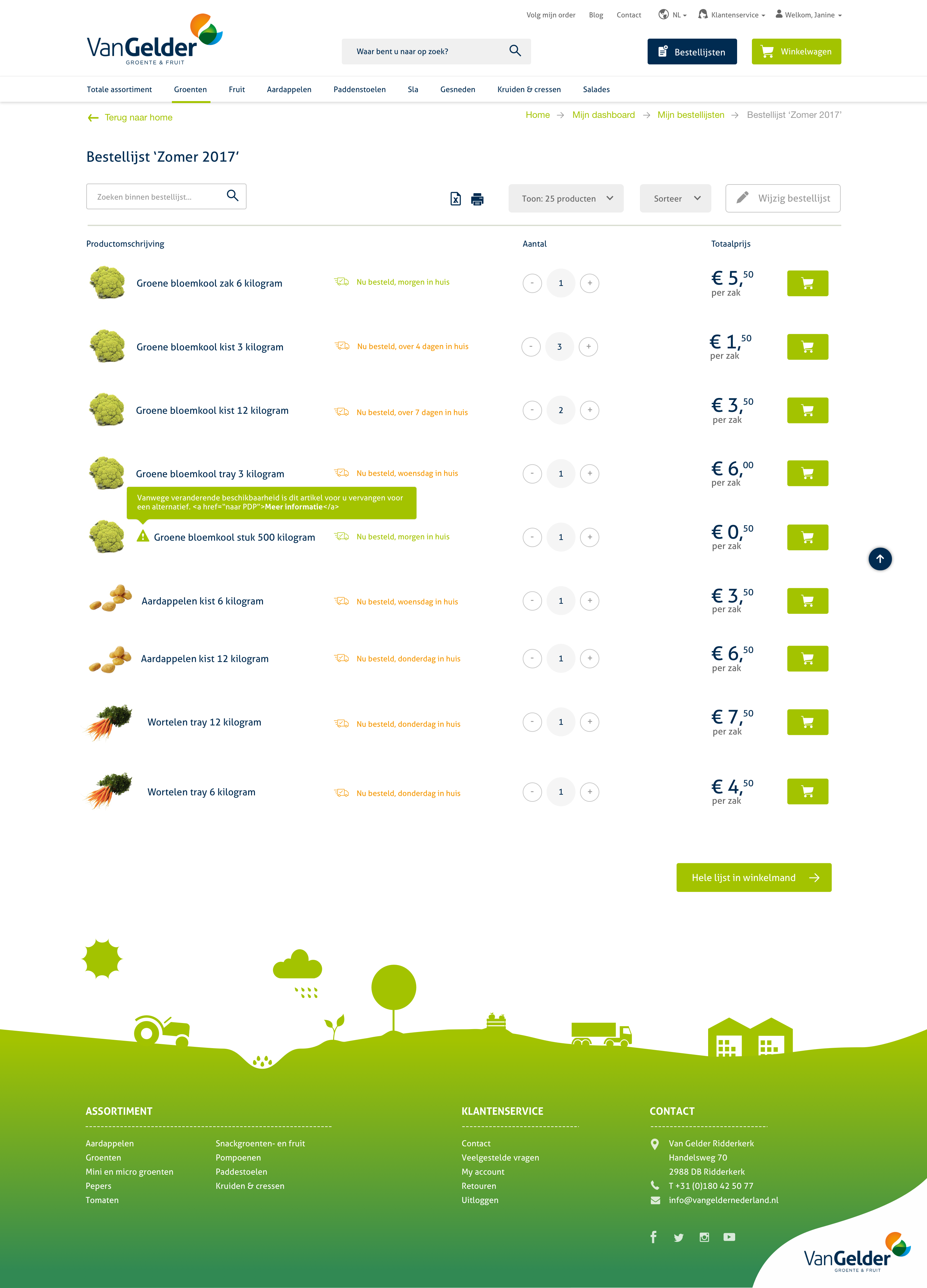 Het creëren van een nieuw e-commerce platform voor Van Gelder was voor mij een uitdagend maar ook erg leuk project, omdat het product van scratch ontworpen moest worden en omdat de groente en fruit handel een compleet nieuwe wereld was voor me. Voor mij is het dan ook echt een succes geworden nu er 98,4% van alle bestellingen via de webshop verlopen.